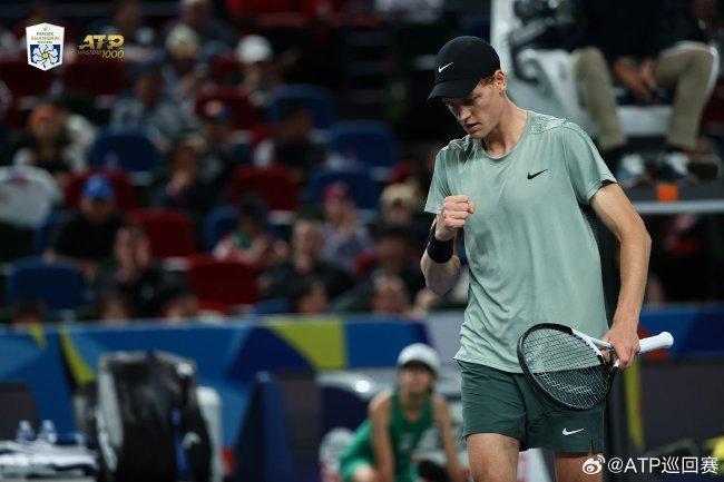 第二场比赛中,头号种子辛纳用时2小时39分钟,相通打满三盘,在先丢一盘的情况下,连扳两盘,以6-7(3)/6-4/6-2逆转打败31号种子埃切维里,晋级正赛第四轮。