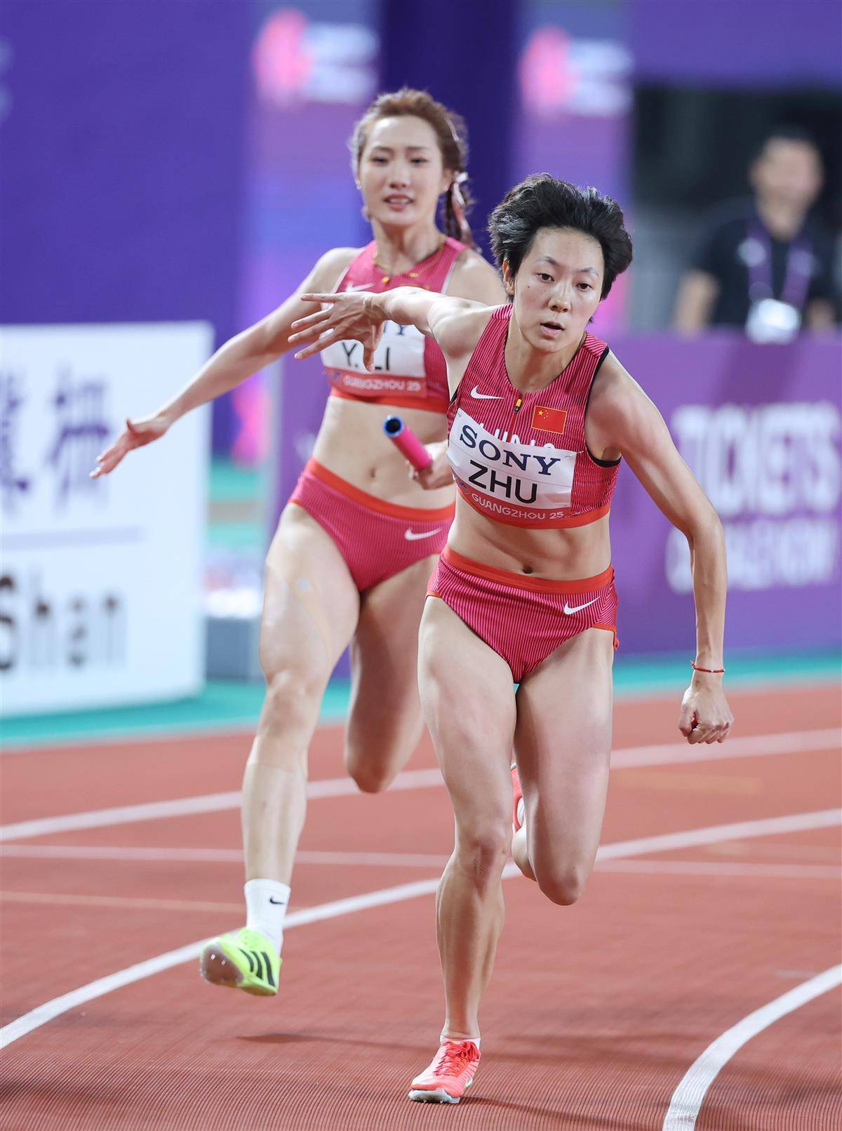 “朱俊颖在弯说念上跑得漂亮……密斯们好样的!亚锦赛女子4×100米戮力相貌,中国队是冠军!”